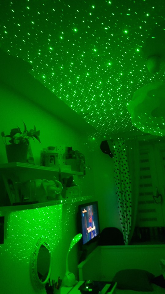 * Proyecciones dinámicas de 21 colores: cinco colores estándar, son onda de agua roja, onda de agua azul, onda de agua verde, onda de agua blanca y punto láser verde, cada dos colores se pueden mezclar y cada dos colores de onda de agua también se pueden mezclar con verde punto láser, para que pueda obtener la mayoría de los 21 colores. Una variedad de colores combinados con la proyección nocturna dinámica de diferentes velocidades, creando una atmósfera de proyección espacial relajada, romántica y colorida, para mostrarle una hermosa luz estrellada.