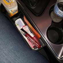 No more painfully shoving your hand in the gaps between your seat and center console or dangerously fishing around your center compartment while driving. Our organizer fits right in that infamous seat-center console gap so items no longer go missing. Instead, you can keep everything sturdily in place — and within arm’s reach — from your phone to drink to lip balm and spare coins.