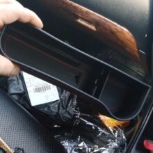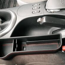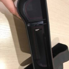 Very simple to install, provides storage for small items, easy to access, prevents cell phones and other small items from disappearing between the seat and console.