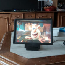I like watching shows on my phone, especially when I'm at work. This screen magnifier makes the image in my phone screen bigger. It's easy to set up and put away. It's lighter than carrying my table. The screen is bigger than my tablet screen.