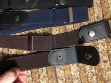 O cinto elástico pode ser ajustado com você. Você não terá que reajustá-lo, mesmo depois de uma grande refeição. Sem fivela cortando você quando você se sentar.