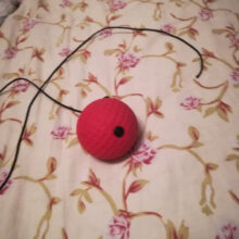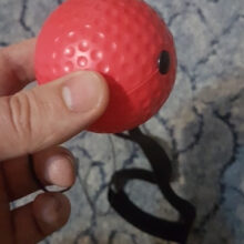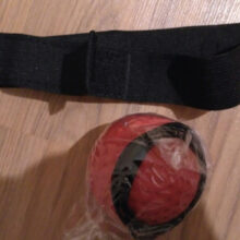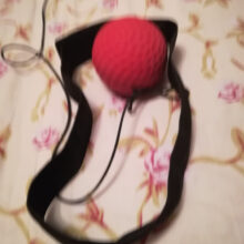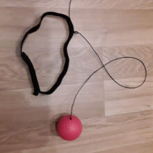 A stretchable band tied to a lightweight ball and an elastic headband.